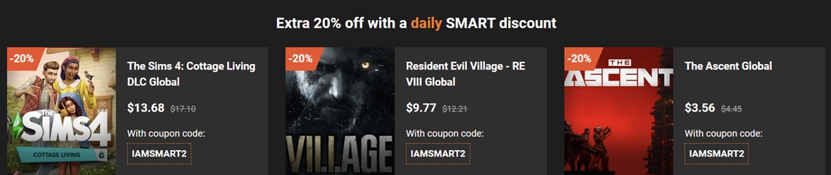 Αν είστε κυνηγός ευκαιριών, αλλά δεν έχετε καμία θεραπεία για το πάθος σας για τα παιχνίδια, τότε θα πρέπει να γνωρίζετε ότι υπάρχουν μερικοί τρόποι που θα σας βοηθήσουν να εξοικονομήσετε ακόμα περισσότερα όταν κάνετε αγορές από το GAMIVO. Υπάρχουν μερικά προγράμματα, όπως το Πρόγραμμα Συνεργατών, το Πρόγραμμα Επιρροής και το SMART GAMIVO, τα οποία θα μπορούσαν να σας προσφέρουν έκπτωση έως και 20% στην αγορά σας μαζί με πολλά άλλα οφέλη. Εγγραφείτε στο ενημερωτικό δελτίο για να έχετε πρόσβαση σε αποκλειστικές εκπτώσεις και σε εξατομικευμένες προσφορές. Ελέγξτε τι υπάρχει στην πρώτη σελίδα του επίσημου ιστότοπου, επειδή θα βρείτε κάποια καλούδια όπως προωθημένες προσφορές και εβδομαδιαία δώρα. Τέλος, αλλά όχι λιγότερο σημαντικό, παραγγέλνετε πάντα από το GAMIVO κατά τη διάρκεια ειδικών εκδηλώσεων εκπτώσεων όπως Back Friday, Cyber Monday και ούτω καθεξής για να έχετε πρόσβαση σε τεράστιες εκπτώσεις για κορυφαία παιχνίδια.