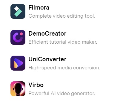 Θέλετε να μετατρέψετε τις φωτογραφίες σας σε ένα εντυπωσιακό και πρωτότυπο βίντεο; Θέλετε να μετατρέψετε κείμενο και ηχογράφηση ήχου σε ένα δυναμικό βίντεο εκπροσώπου με AI avatars; Θέλετε να μετατρέψετε εύκολα το δισδιάστατο βίντεο σας σε τρισδιάστατο; Ή μήπως χρειάζεστε ένα ισχυρό εργαλείο DVD; Μπορείτε να τα βρείτε όλα αυτά στην κατηγορία Δημιουργικότητα βίντεο. Εδώ, θα έχετε πρόσβαση σε βραβευμένα προϊόντα όπως τα Filmora, DemoCreator, UniConverter, Virbo, Presentory και πολλά άλλα. Και τώρα μπορείτε να μειώσετε σημαντικά το κόστος της αγοράς σας με τους επίσημους εκπτωτικούς κωδικούς WONDERSHARE.